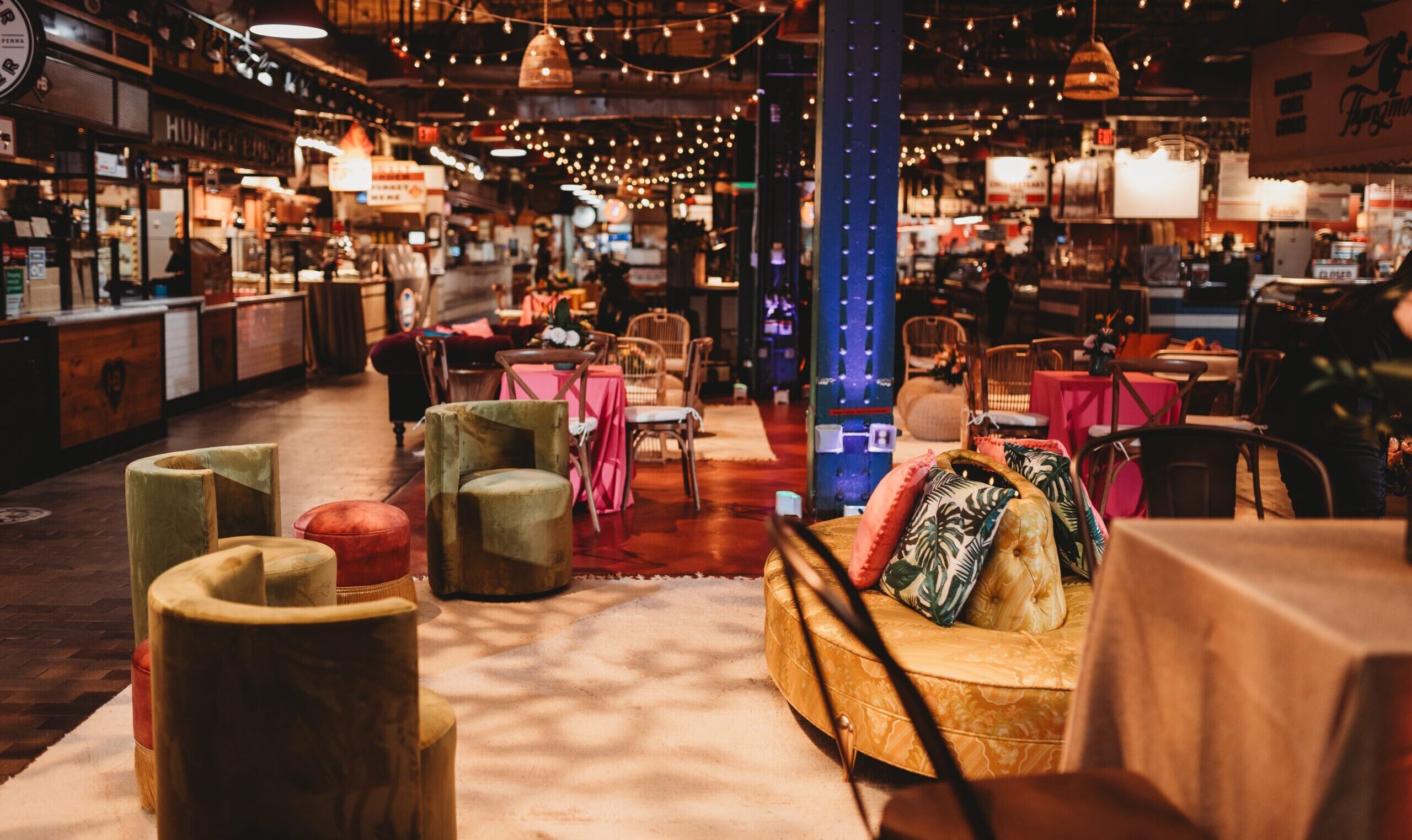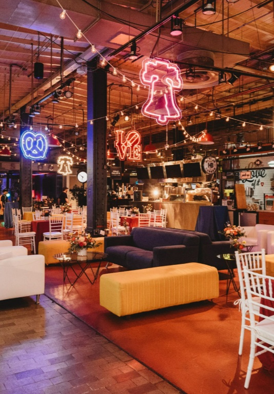 With the distinct honor of serving as the exclusive venue management firm for the historic Reading Terminal Market since 2011, All About Events has transformed this beloved landmark into one of Philadelphia’s most dynamic destinations for private events. Ideally situated across from the Convention Center and steps from surrounding hotels, the Market offers an unforgettable setting for evening wedding receptions, rehearsal dinners, welcome celebrations, and corporate gatherings of up to 5,000 guests. Far from a traditional venue, the Market invites guests to embark on a one-of-a-kind culinary journey through All About Events’ signature Interactive Dining & Dessert Experience, where clients curate a custom lineup of the Market’s celebrated Merchants to remain open exclusively for their private event—each offering a miniature, made-to-order menu item directly from their stand. Immersive, flavorful, and deeply rooted in the heart of Philadelphia, it is a singular experience that reflects the soul of the city and cannot be replicated anywhere else on the East Coast.